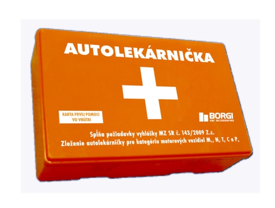 Autolekárnička v plastovej krabičke.